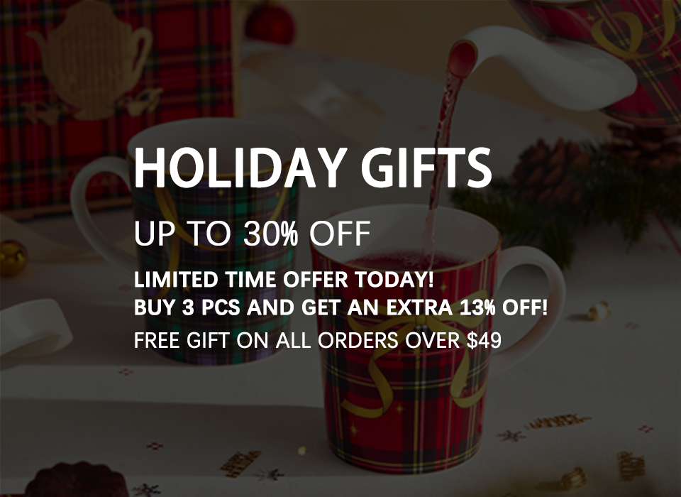 BlanBunny Golden Ribbon Bone China Tea Set Teapot, Cup & Saucer, Mug Christmas & Holiday Gift