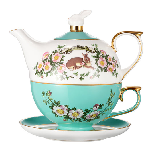 BlanBunny Watercolor Tea for One Set Bone China Teapot Cup and Saucer Gift Set