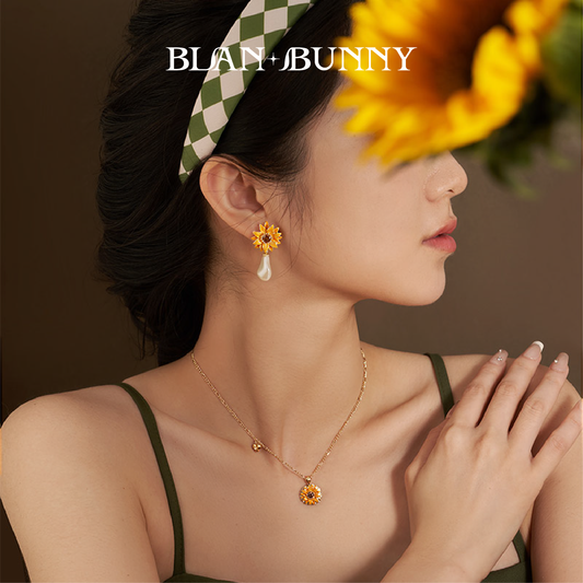 BlanBunny Sunflower Jewelry Crystal Glass Baroque Pearl Stud Earrings and Necklace Set Unique Christmas Gift