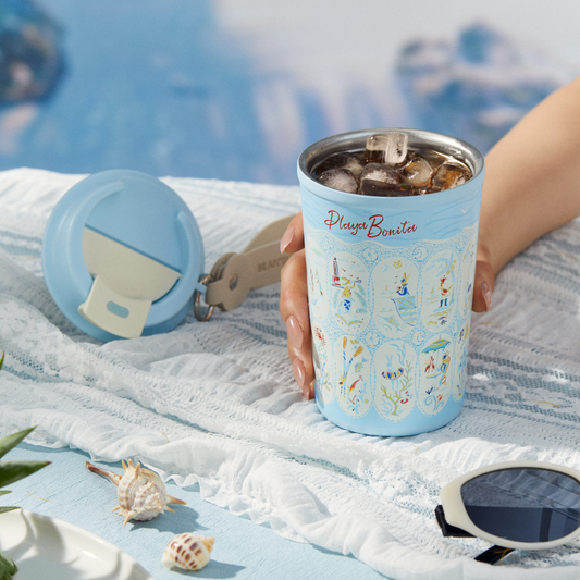 BlanBunny Seaside Diary Travel Mug Thermos Cup Insulated Portable Coffee Mug Keeps Heat and Cold