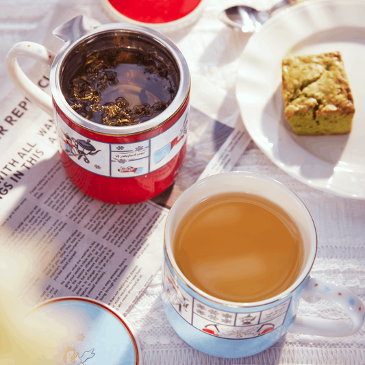 BlanBunny Golden Ribbon Bone China Tea Set Teapot, Cup & Saucer, Mug Christmas & Holiday Gift